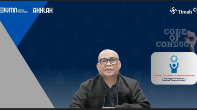 Narasumber dalam webinar ini Defryanto yang Division Head Risk Management & Compliance PT Timah menjelaskan PT Timah memiliki kebijakan dan mekanisme pelaporan gratifikasi yang jelas dan dapat diakses oleh seluruh karyawan dan mitra bisnis.