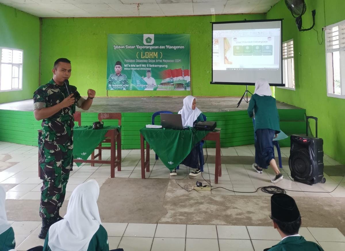 Dalam rangka meningkatkan disiplin, nasionalisme serta rasa cinta tanah air. Babinsa Koramil 429-11/Sekampung Kodim 0429/Lamtim berikan materi Wasbang dan LDKS, di MTs. Ma’arif NU 5 Sekampung, Selasa (28/11/2023).