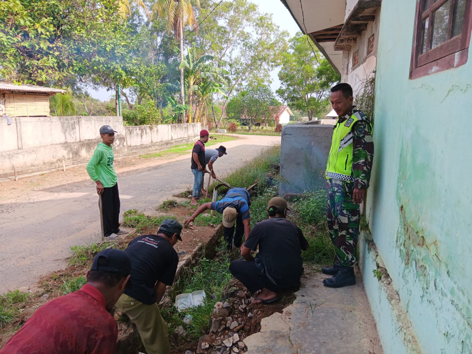 Selain Babinsa hadir pula dalam kegiatan gotong-royong, Pj. Kades Margototo Komarudin beserta perangkat serta warga masyarakat.