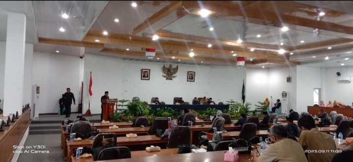 Bangka,Poltamnews.com. – DPRD Kabupaten Bangka menggelar Rapat Paripurna Penyampaian Rancangan Perubahan APBD TA.2023 dan Persetujuan Raperda, Senin (11/09). Rapat ini dipimpin oleh ketua DPRD Iskandar, S.IP dan dihadiri oleh Bupati Bangka Mulkan, SH MH, Wakil Ketua I M.Taufik Koriyanto, SH,MH, Wakil Ketua II Rendra Basri, B.Sc, serta FORKOPIMDA, Kepala Dinas, kantor, Camat, Lurah, Darma Wanita, dan Insan Pers.