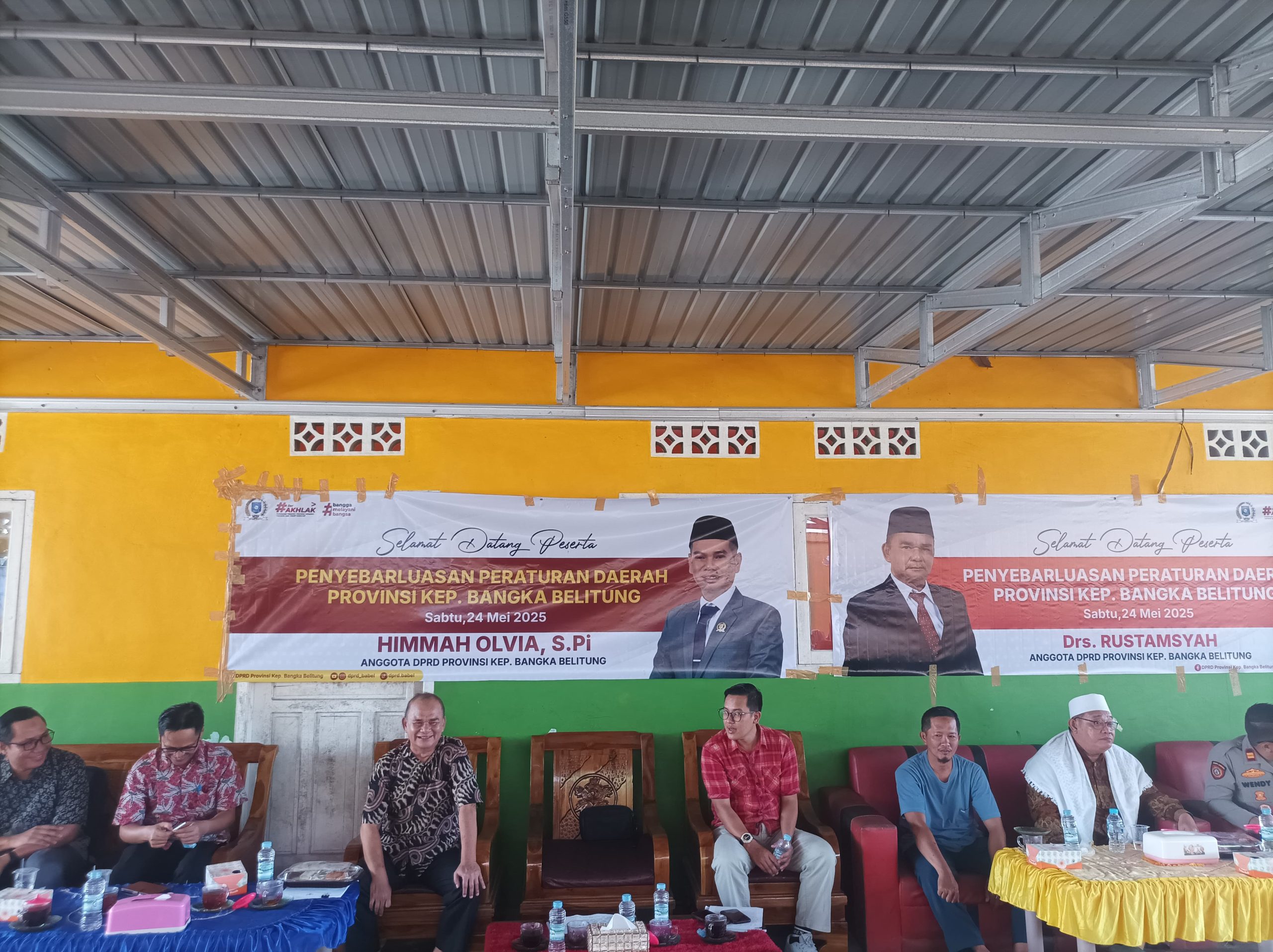 Poltamnews.com |Mendo Barat – Wakil Ketua dan Anggota Komisi II DPRD Provinsi Kepulauan Bangka Belitung, Himmah Olivia dan Rustamsyah melaksanakan kegiatan penyebarluasan informasi Perda No. 13 Tahun 2017 tentang Pemberdayaan Koperasi dan UMKM serta Perda No. 19 Tahun 2019 tentang Penataan Usaha Perkebunan Kelapa Sawit di Desa Petaling, Kecamatan Mendo Barat, Kabupaten Bangka, Sabtu (24/05/2025).