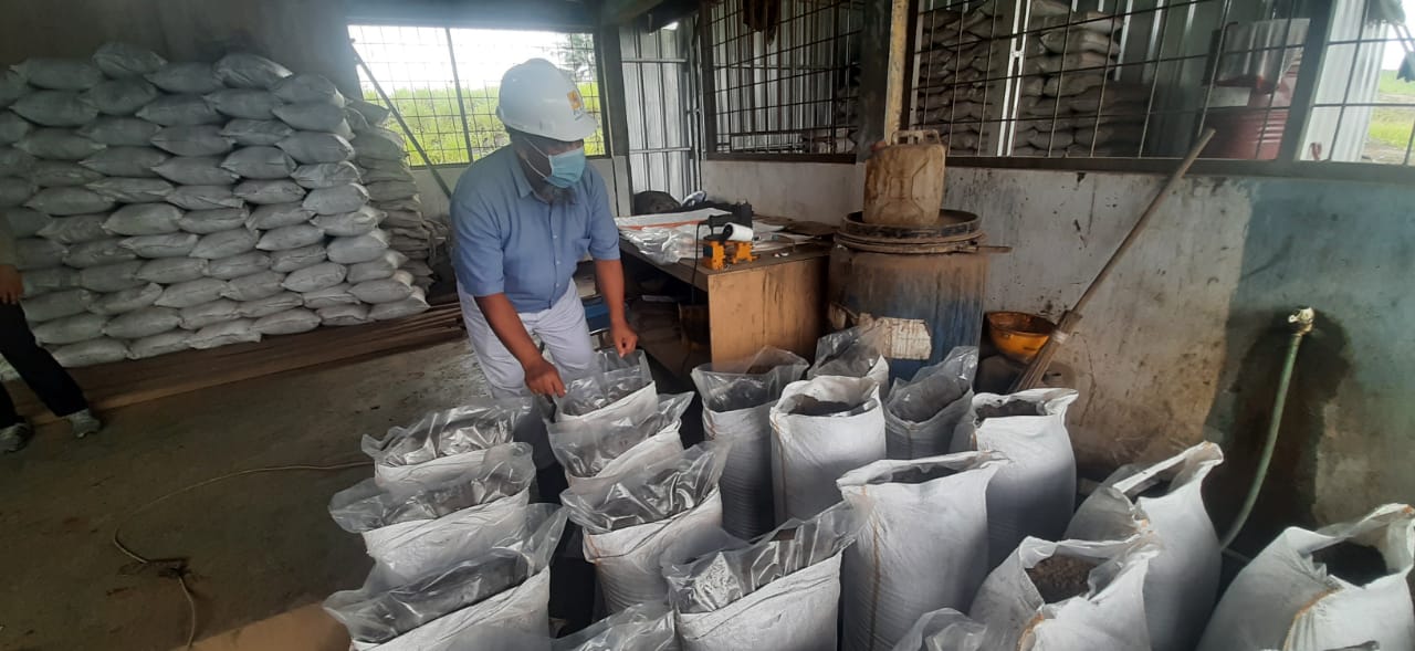 Manajer K3 dan Lingkungan PLN UIW Babel sedang memeriksa pupuk yang berbahan baku FABA