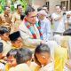 Meski tampak lelah setelah perjalanan panjang, Prabowo tetap menyempatkan diri menyapa satu per satu warga yang hadir.