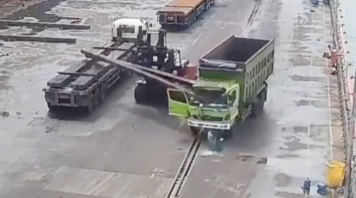 Berdasarkan keterangan resmi, kecelakaan terjadi akibat benturan antara kendaraan dump truck angkutan logistik milik armada Ratu Melati dengan alat berat forklift yang dioperasikan oleh Perusahaan Bongkar Muat (PBM) PT Galuh Bandar Samudra.