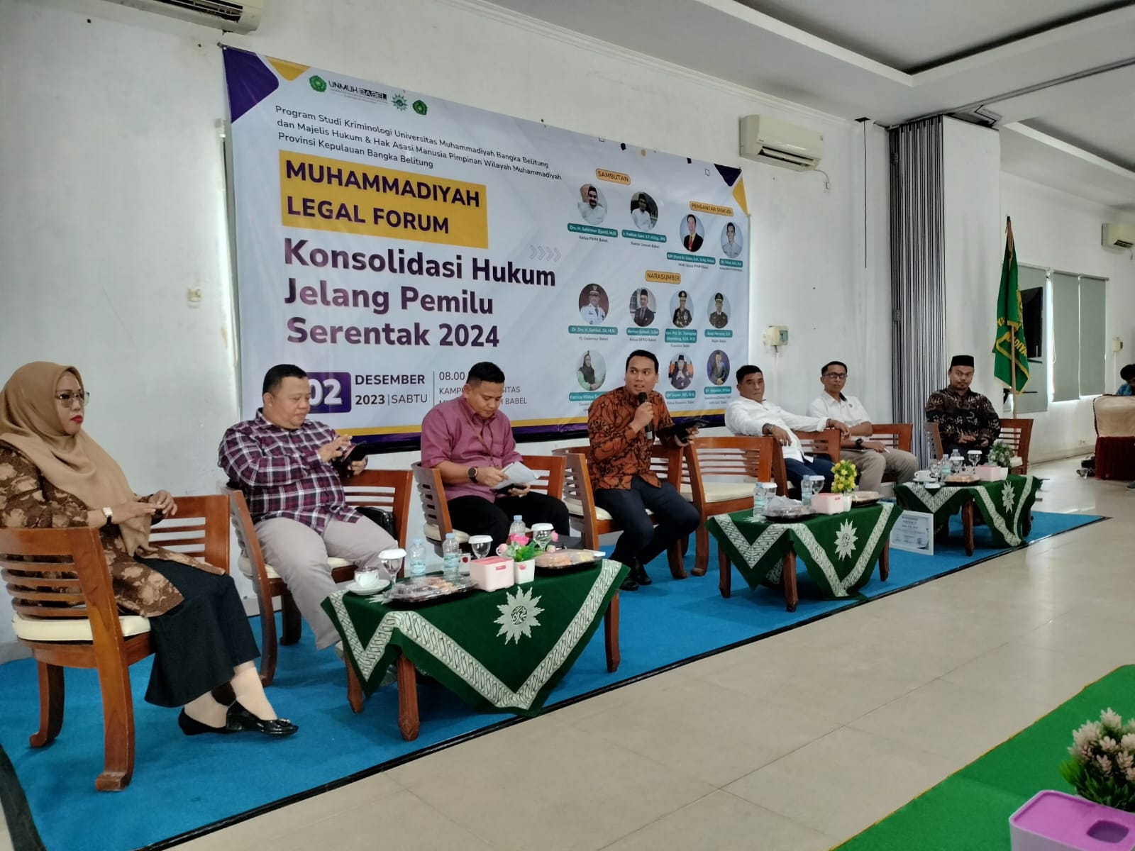 Kegiatan yang bertajuk “Konsolidasi Hukum Jelang Pemilu Serentak 2024” itu diselenggarakan di Ruang Pertemuan Universitas Muhammadiyah Bangka Belitung pada Sabtu (02/11/2022).