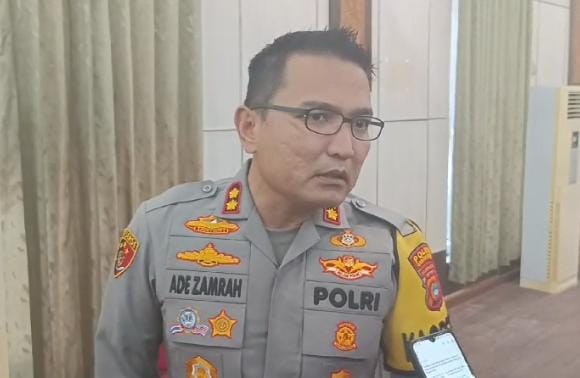 Kapolres Bangka Barat AKBP Ade Zamrah pada saat wawancara aparat penegak hukum tidak pernah memberikan izin terhadap tambang yang tidak mempunyai izin/legalitas Senin (18/9/2023).