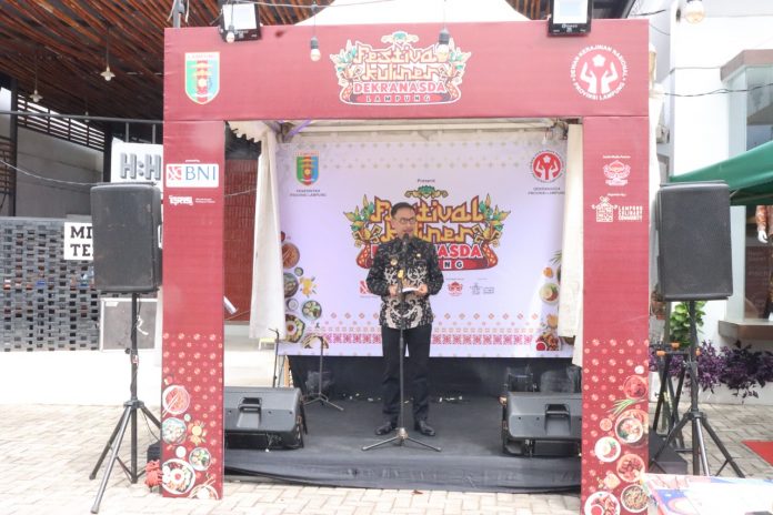 Mewakili Gubernur Lampung, Kepala Dinas Koperasi, Usaha Kecil dan Menengah, Samsurijal, menyampaikan hal tersebut ketika membuka Acara Festival Kuliner Dekranasda Lampung, bertempat di Halaman Gedung Dekranasda, Jumat (25/11/2022).