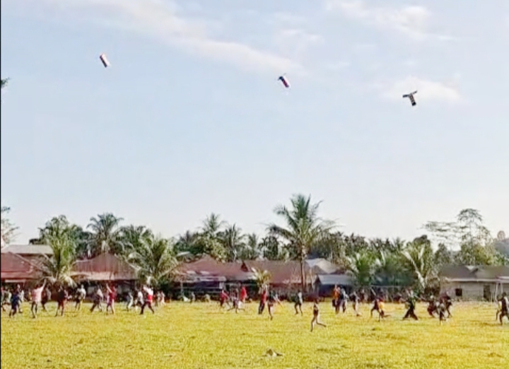 Masyarakat dari berbagai usia, mulai dari anak-anak, orang tua, hingga lansia, berteriak bahagia menyambut bantuan yang jatuh perlahan dari udara. Anak-anak berlarian dengan tawa lepas, mengikuti arah helibox yang mendarat satu per satu di lapangan. Begitu menyentuh tanah, warga segera mengerubungi kotak-kotak tersebut, merayakan kedatangan bantuan.