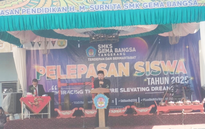 Poltamnews.com, || Tangerang – Tiga Tahun terlewatkan oleh siswa siswi SMK Gema Bangsa dalam acara pelepasanan tahun 2025 yang dibuat haru dengan ucapan ulang tahun dan suprise kue ulang tahun dari dewan guru kepada Ustadz Jamaludin selaku kepala sekolah SMK Gema Bangsa.