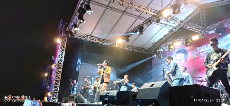 POLTAMNEWS.COM – Penampilan group band asal Jawa Timur, Gilga Gildcoustik sukses hibur ribuan penonton yang membanjiri kawasan Sport Center Parit Tiga Pemkab Bangka Selatan, pada malam puncak event pariwisata Basel Bekecak (Behame-hame Kite Pacak), Rabu (17/4/2024) malam.