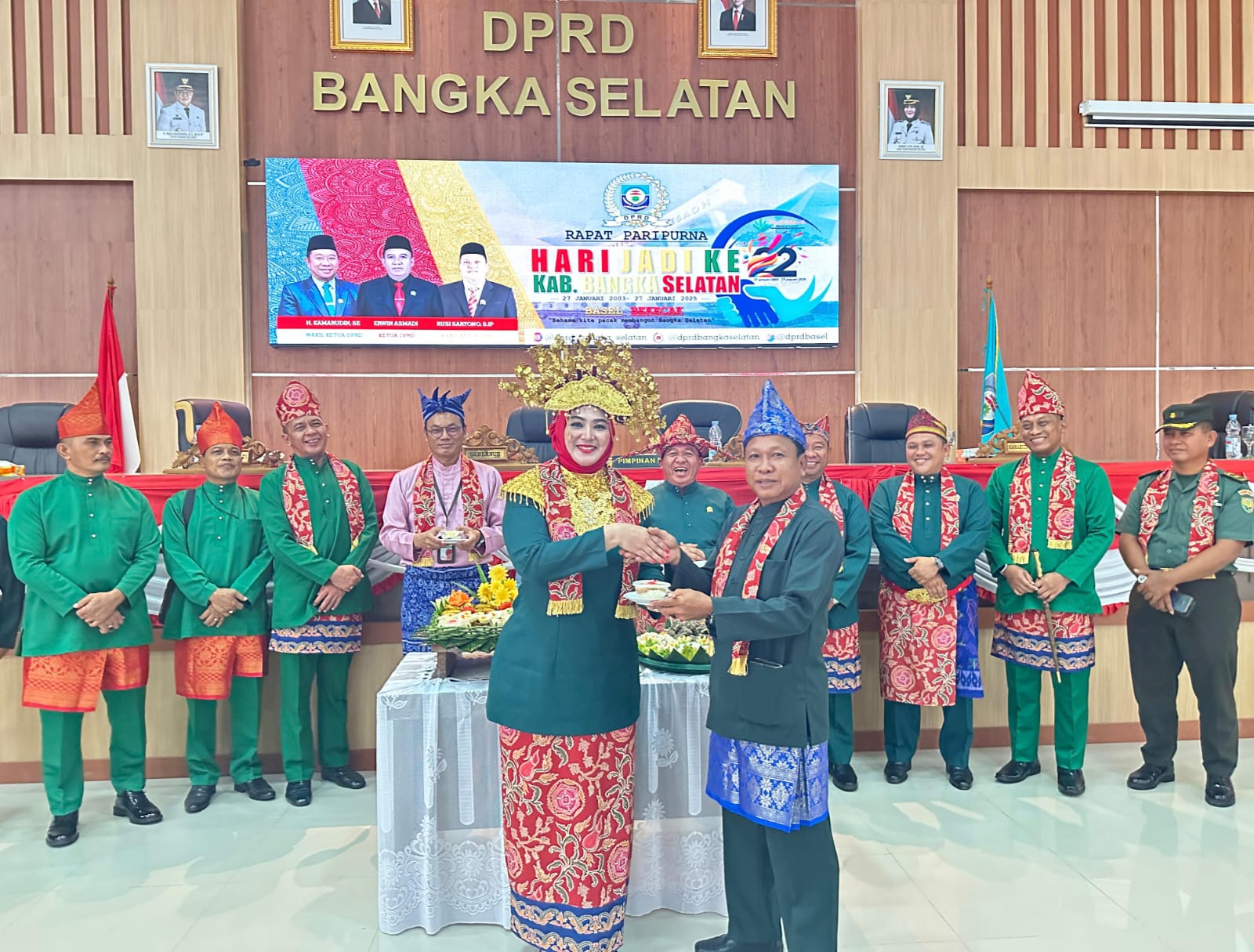 PoltamNews.com, Toboali — Memperingati Hari Jadi Kabupaten Bangka Selatan yang ke-22, Dewan Perwakilan Rakyat Daerah (DPRD) Kabupaten Bangka Selatan menggelar Rapat Paripurna di Gedung Paripurna DPRD Kabupaten Bangka Selatan pada Kamis (30/1/2025), serta turut dihadiri oleh berbagai pejabat daerah dan tokoh masyarakat.