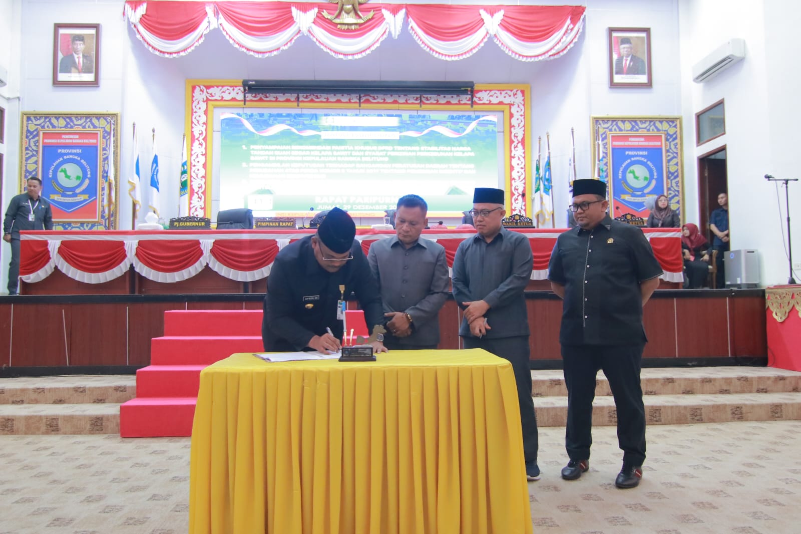 Rapat Paripurna dipimpin langsung Ketua DPRD Herman Suhadi didampingi Wakil Ketua I DPRD Heryawandi dan Wakil Ketua II DPRD Beliadi. Hadir pula Penjabat (Pj) Gubernur Kepulauan Bangka Belitung Safrizal ZA , Sekda Naziarto, dan Forkopimda beserta Kepala Perangkat Daerah lingkungan Pemprov Kep. Babel. (red).