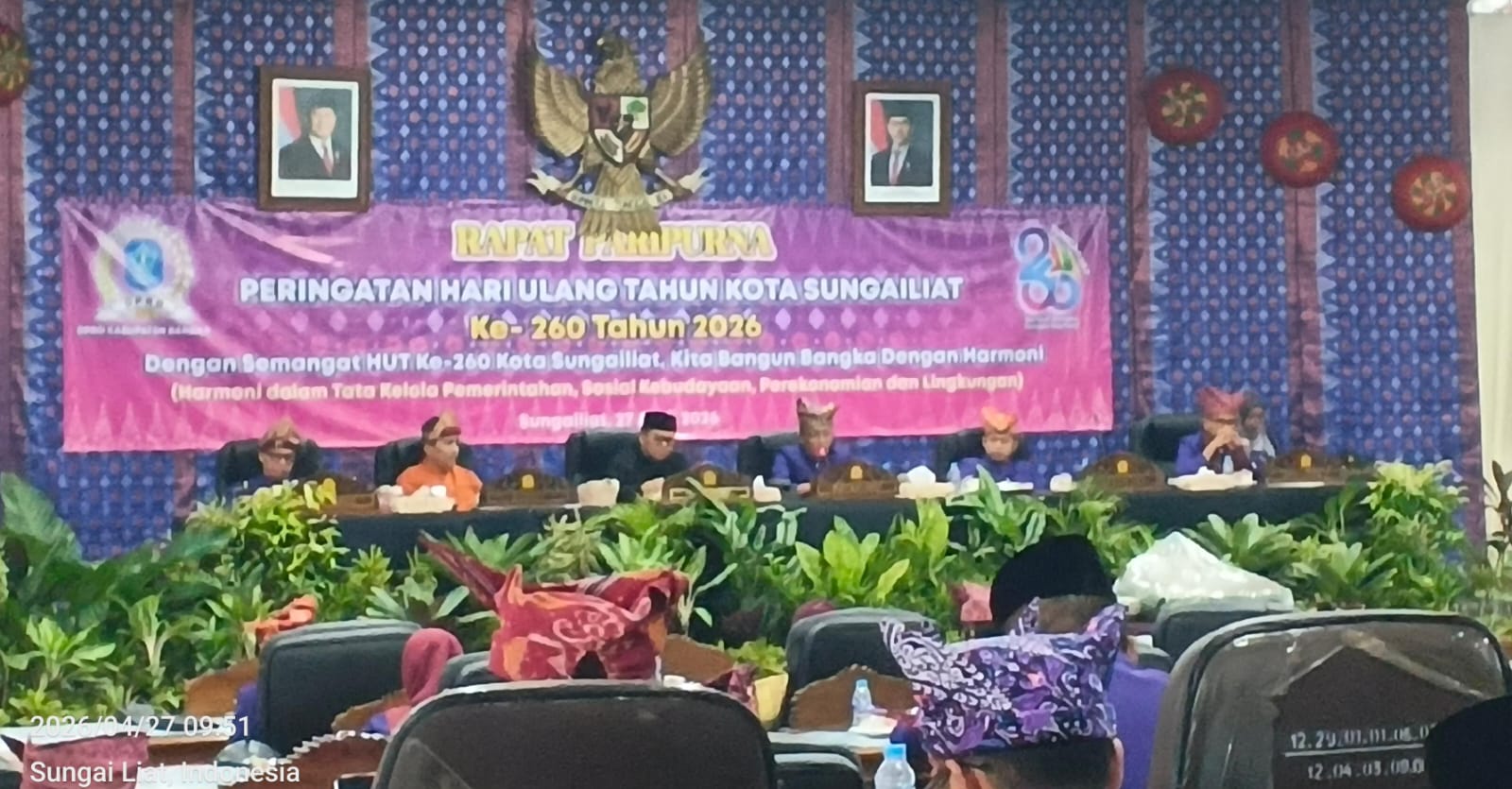 PoltamNews.Com, Sungailiat — Suasana khidmat menyelimuti Ruang Rapat Paripurna DPRD Kabupaten Bangka, pada Senin pagi (27/4/2026), saat seluruh elemen daerah berkumpul memperingati Hari Ulang Tahun (HUT) Kota Sungailiat yang ke-260.