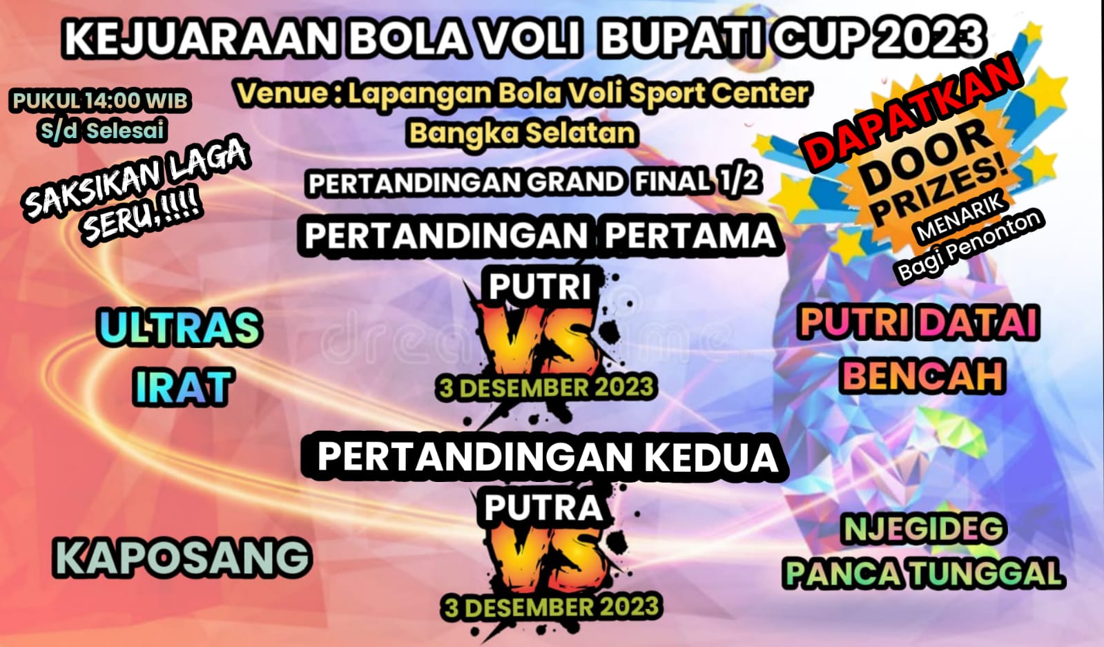 “Kepada masyarakat di Bangka Selatan dan Bangka Belitung datang dan Saksikanlah partai Final Bola Voli,” ujar Yanto.