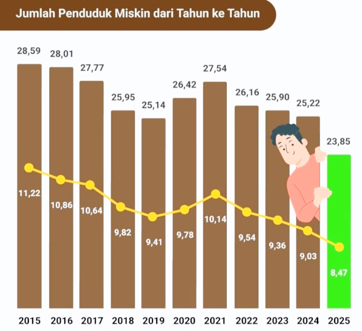 Dalam laporan bertajuk “Mengubah Indonesia”, yang dirilis Sabtu (18/10), disebutkan bahwa berbagai kebijakan pro-rakyat mulai menunjukkan dampak konkret di lapangan. Di antaranya, penurunan tingkat kemiskinan nasional pada Maret 2025 yang mencapai 8,47%, angka terendah sepanjang sejarah Indonesia.
