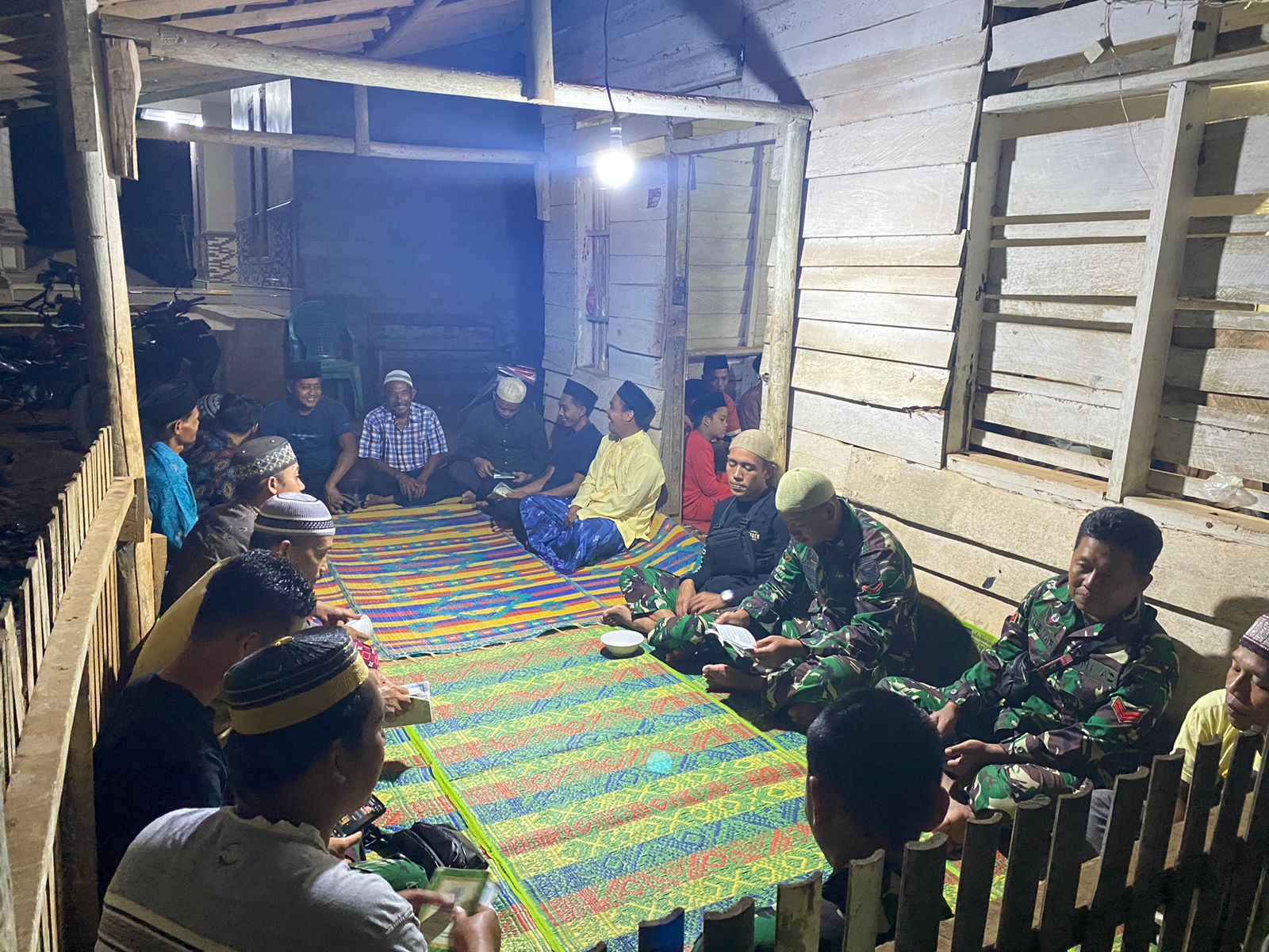 Ditengah kesibukan pembangunan sasaran Sasaran Fisik, Satuan Tugas (Satgas) TNI Manunggal Membangun Desa (TMMD) Reguler ke -117 Kodim 0429/Lamtim membaur bersama masyarakat menghadiri Yasinan rutin, Kamis Malam (20/7/2023).
