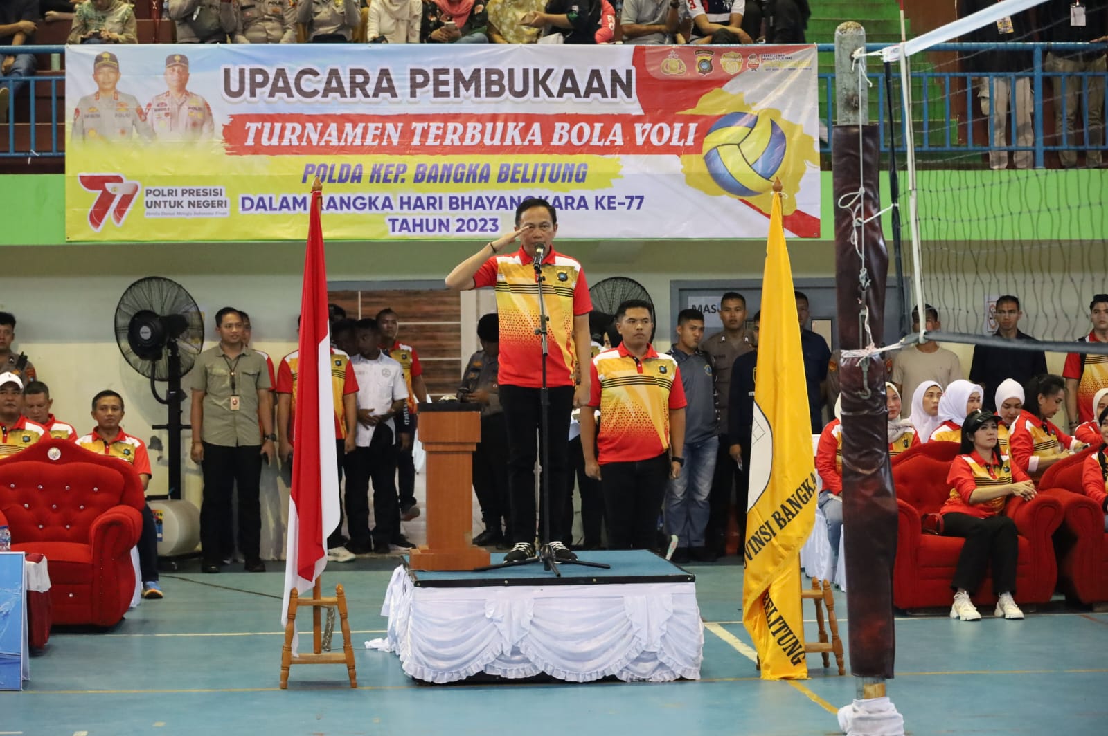 Turnamen terbuka bola voli untuk eksternal dan internal se Bangka Belitung tersebut, dalam rangka memperingati Hari Bhayangkara ke-77 tahun 2023 Polda Kepulauan Babel.