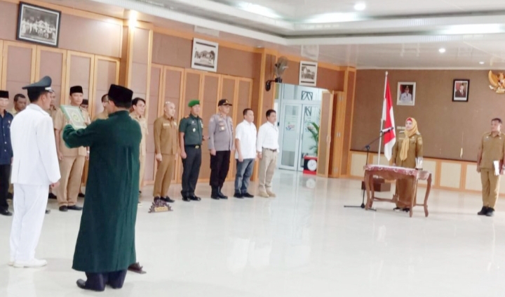 Poltamnews.com || TOBOALI — Wakil Bupati Bangka Selatan, Debby Vita Dewi, resmi melantik Nasrullah sebagai Penjabat (Pj) Kepala Desa Simpangrimba di Hall Kantor Bupati, Selasa (15/04/2025).